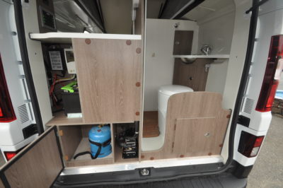 Also – with a degree of juggling – you could take a shower at the back, with the roof up – it won’t be easy. Luckily, though, the shower can also be used outside, for example for washing down dirty footwear and pooches!