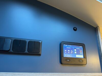 Also, as standard are fittings like the 100Ah lithium battery, 200Watt solar panel, digital TV aerial, cab blinds etc.