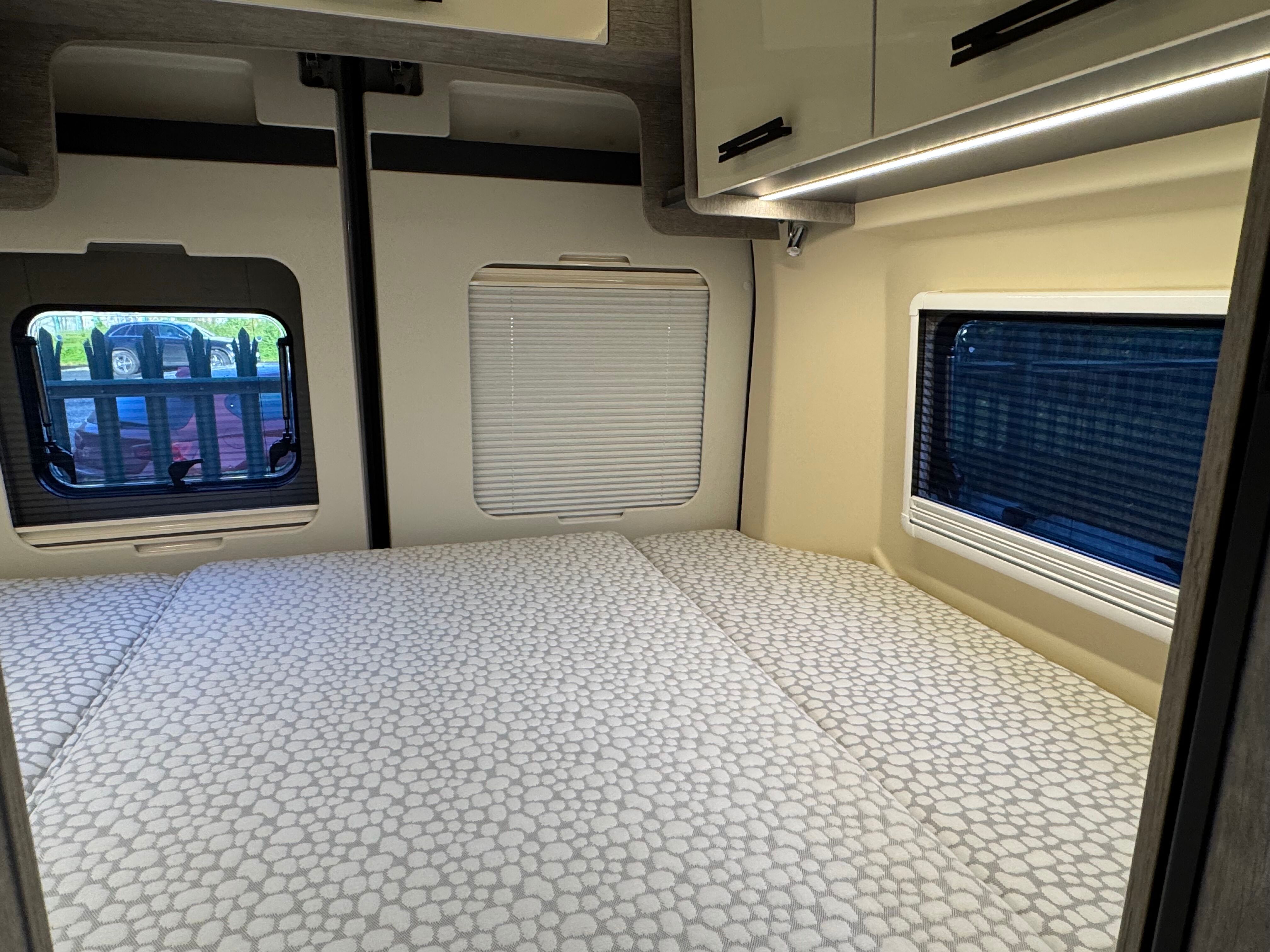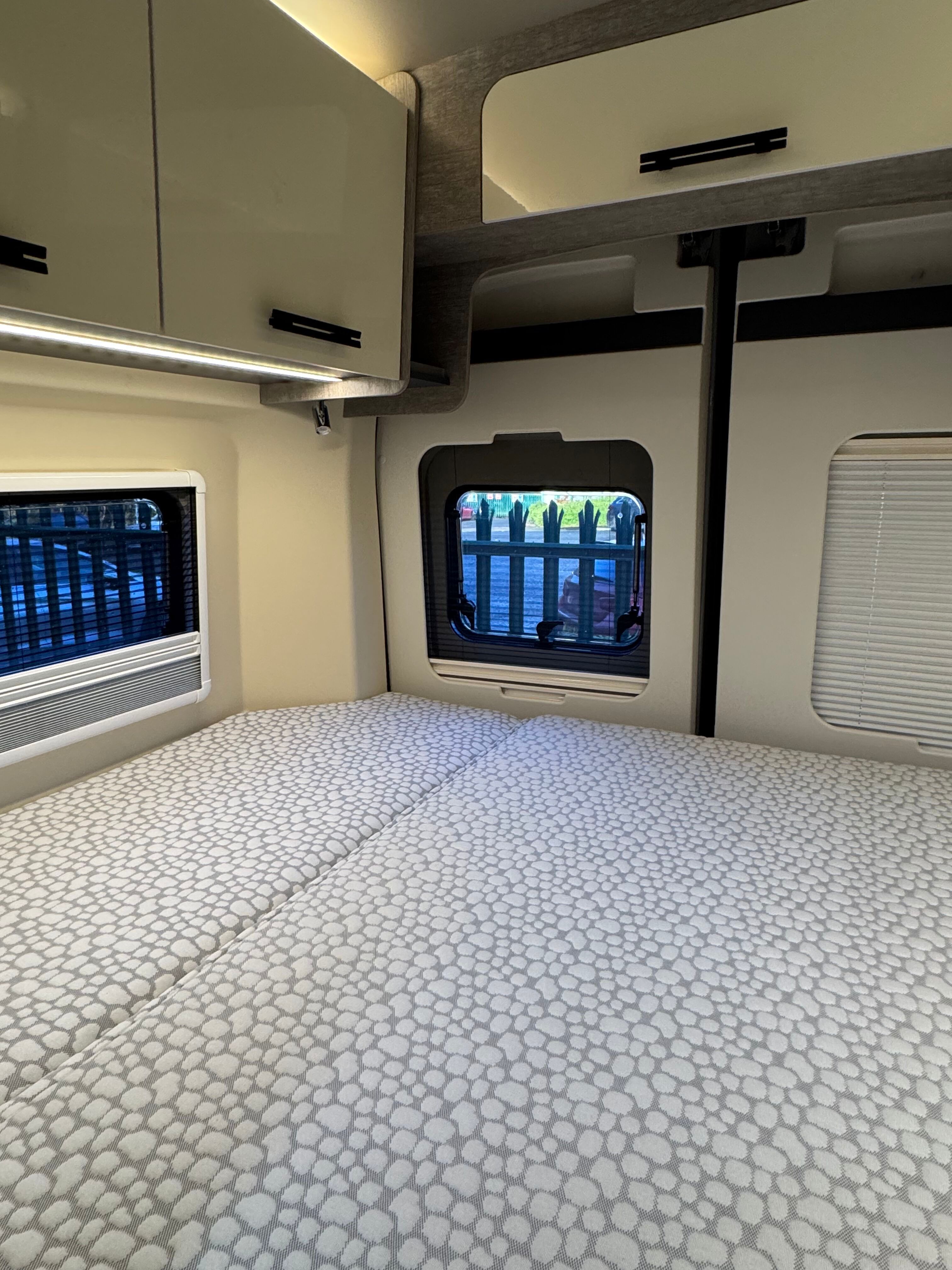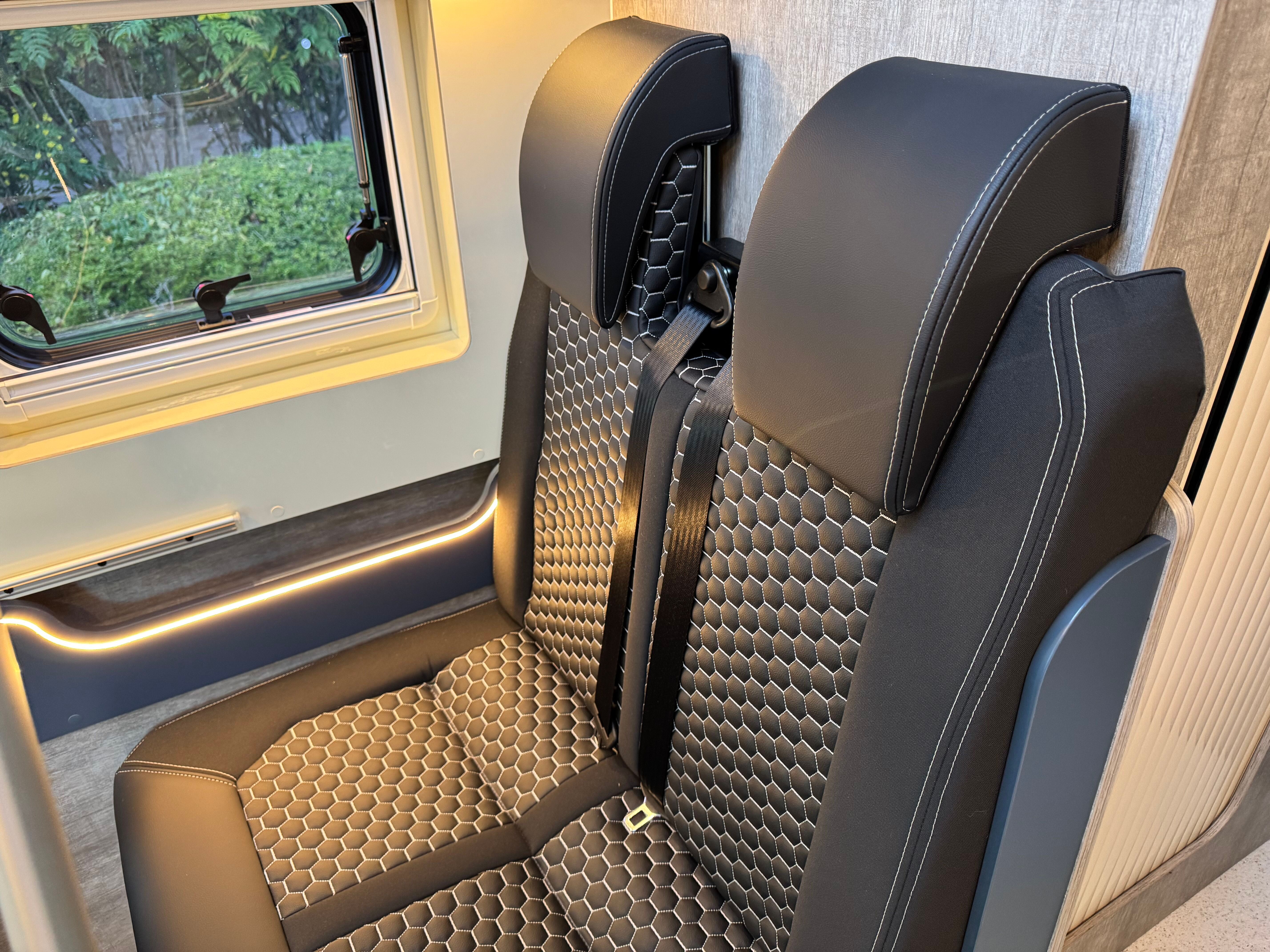 Windows to both sides as well as in each back door – all with concertina blinds and flyscreens – help with ventilation as well as preventing any feeling of claustrophobia.