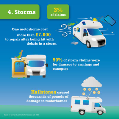 Although only three percent of settled claims were for storm damage, they can be costly, with the biggest payout being £7,480 after debris hit a motorhome during a storm.